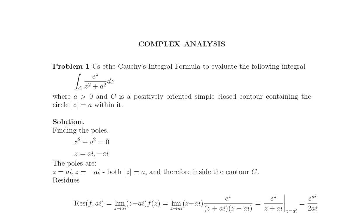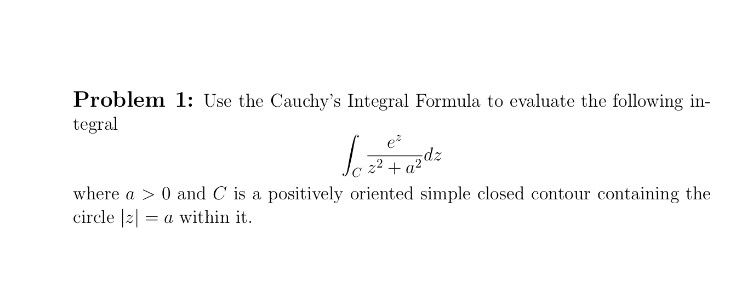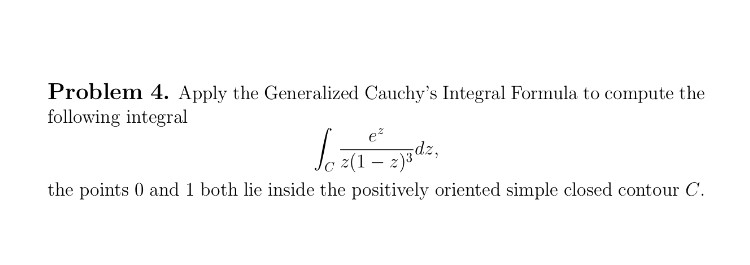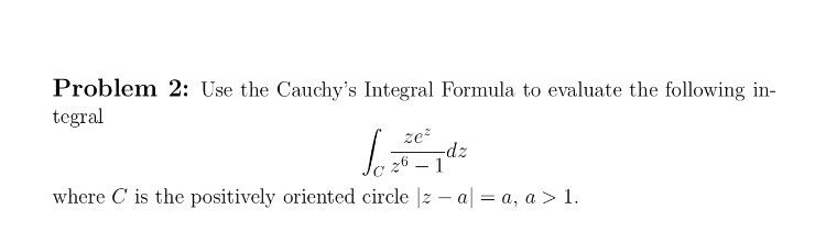 Problem 1: Use the Cauchy's Integral Formula to evaluate the follow...
