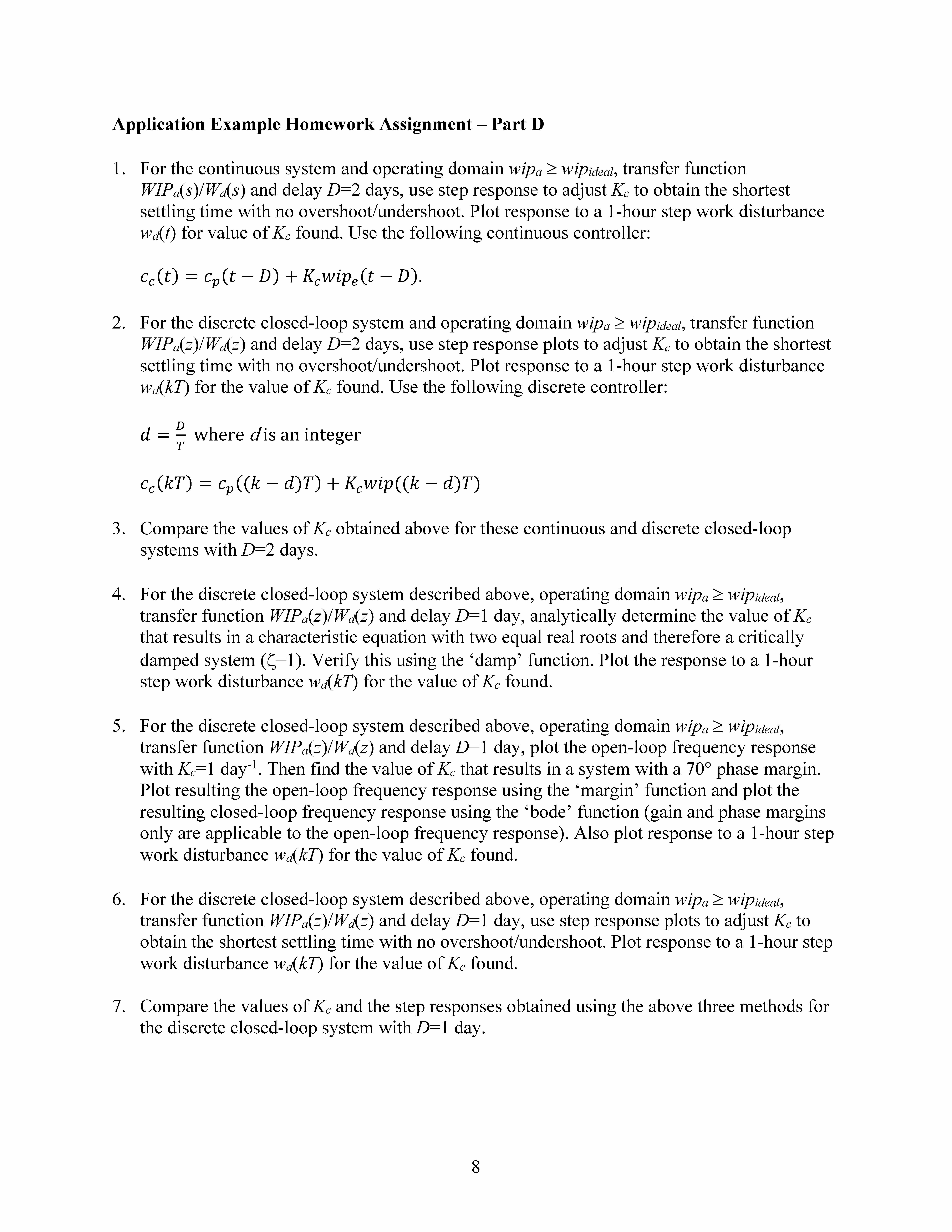 Closed-Loop Control Theory Application Example Homework To remain ...