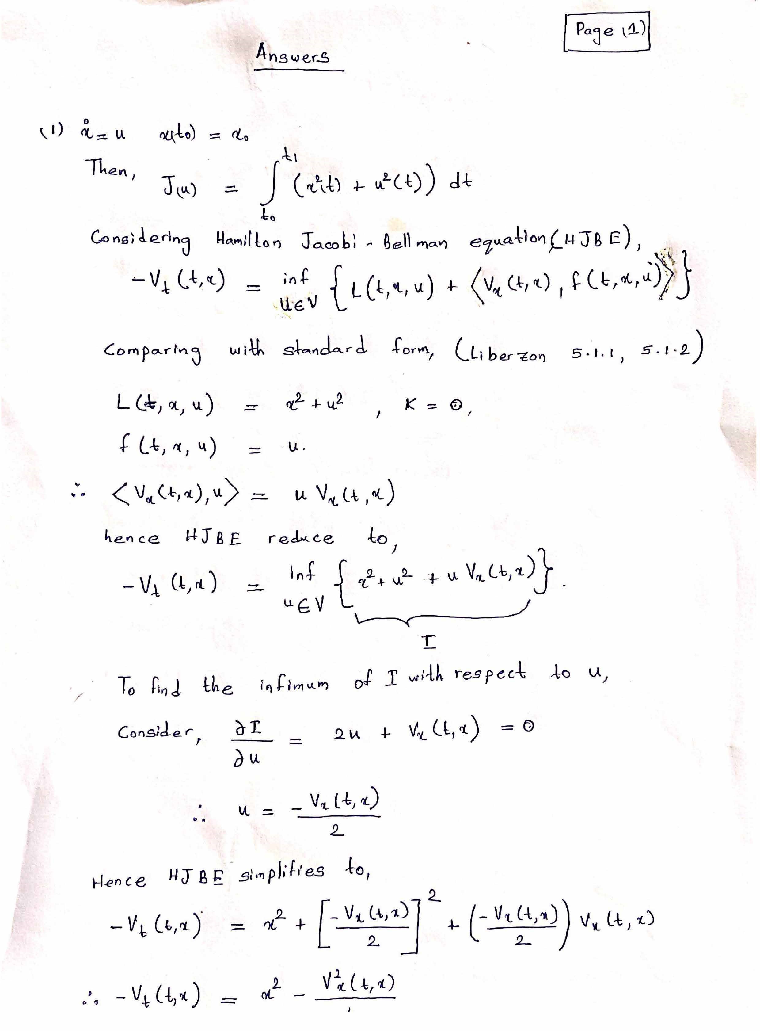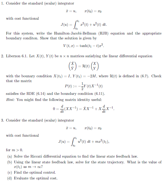 1. Consider the standard (scalar) integrator with cost functional ...