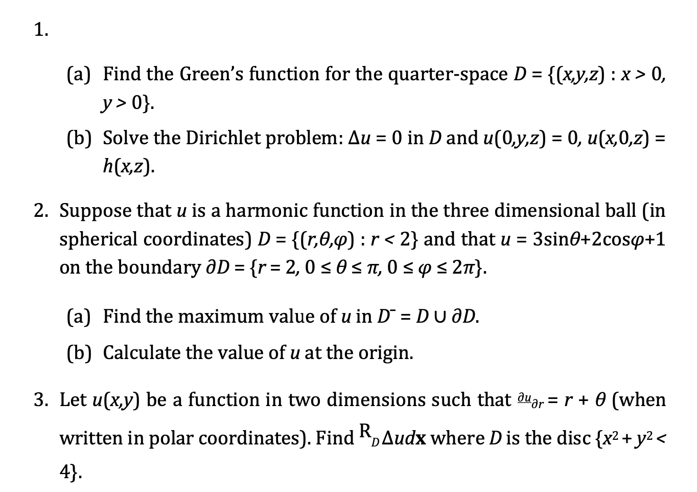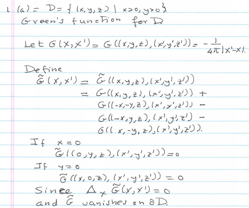 1. (a) Find the Green's function for the quarter-space D - {(x,y,z...
