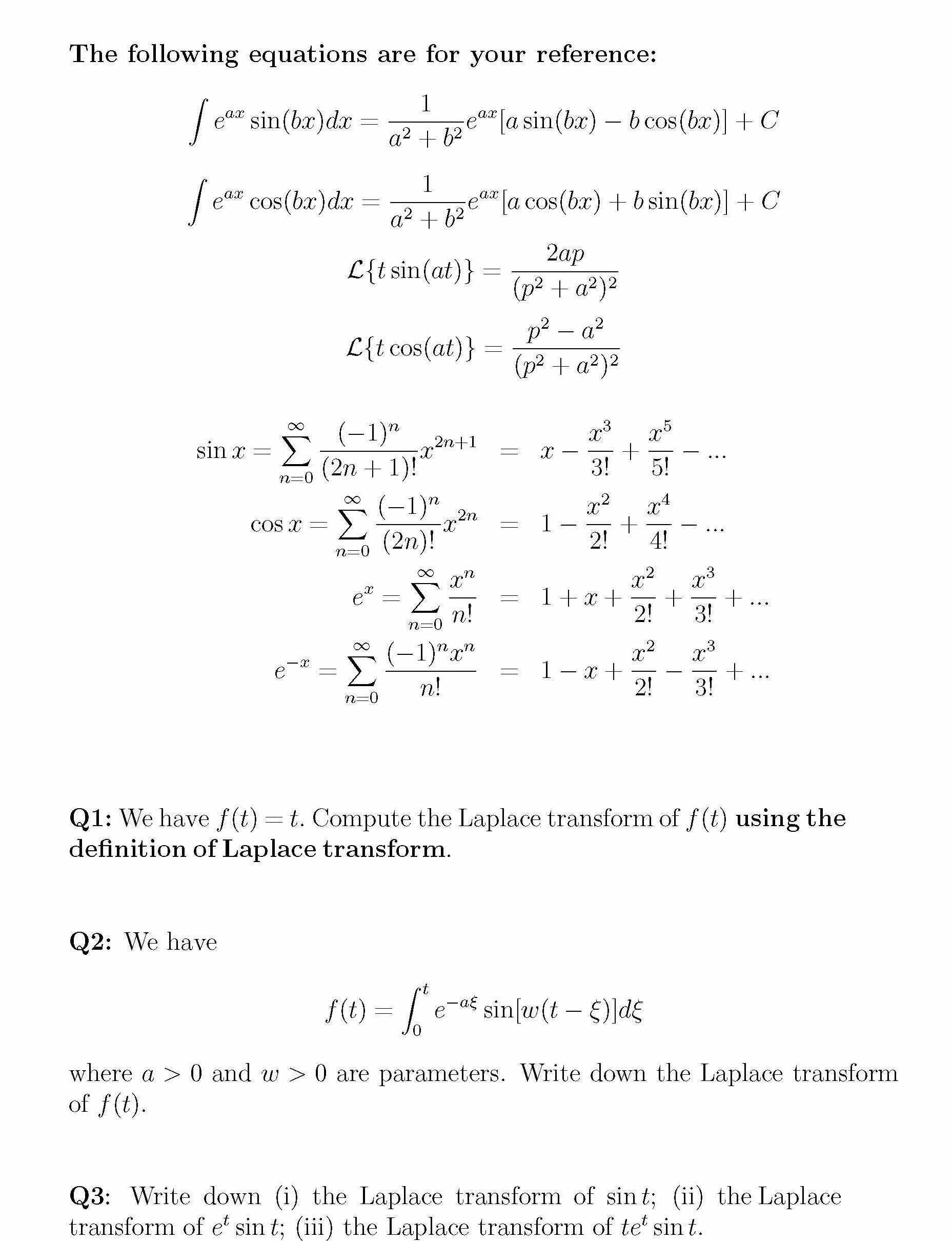 The following equations are for your reference: / sin(bx)dx sin(br...