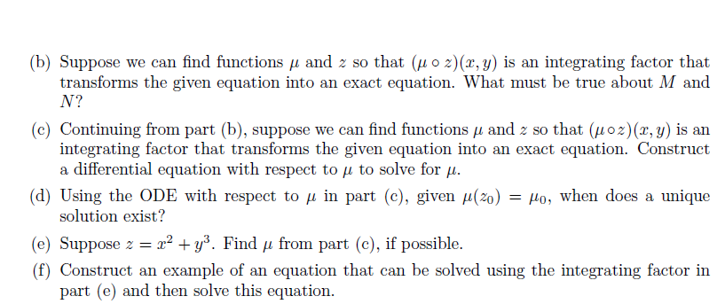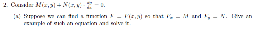 2. Consider M [(r,y)+N(x,y) . dx dy =0. (a) Suppose we can find a ...