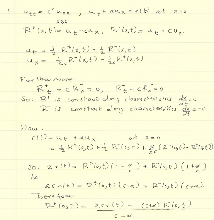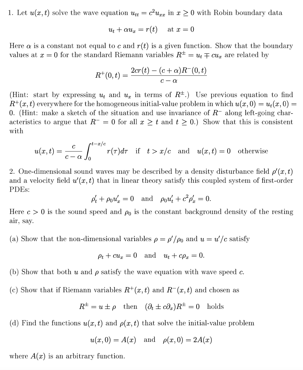 1. Let u(x; t) solve the wave equation utt = c2uxx in x 0 with Ro...