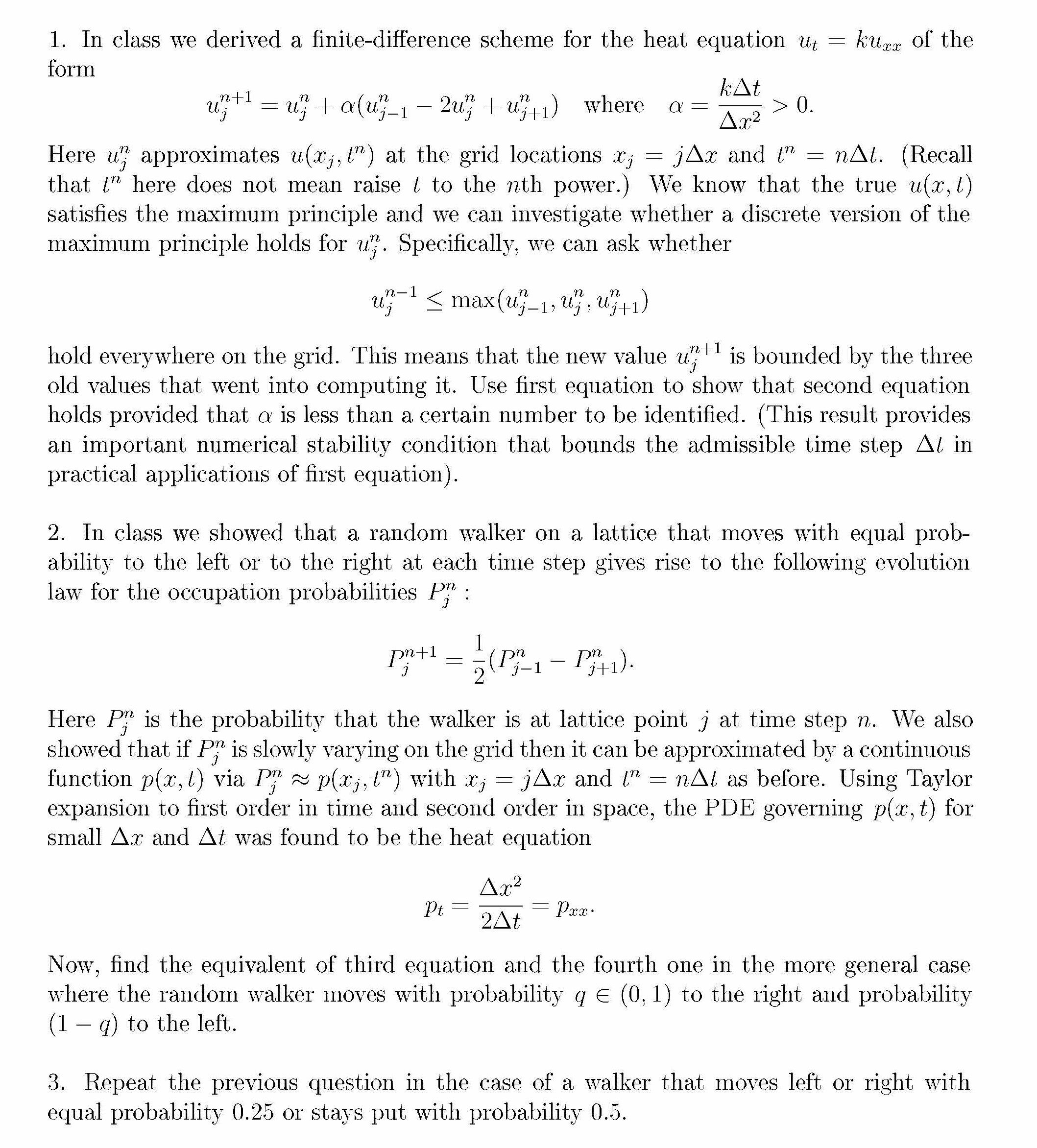 1. In class we derived a nite-dierence scheme for the heat equati...