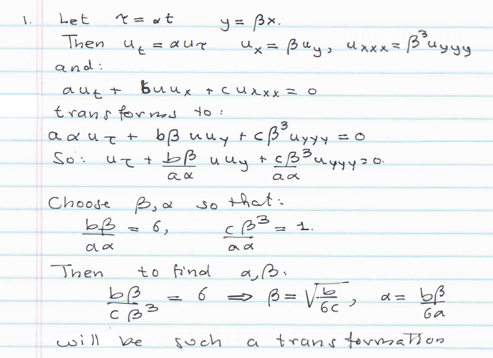 1. Consider the PDE auₜ + buuₓ + cuₓₓₓ = 0 (1) for u(x...