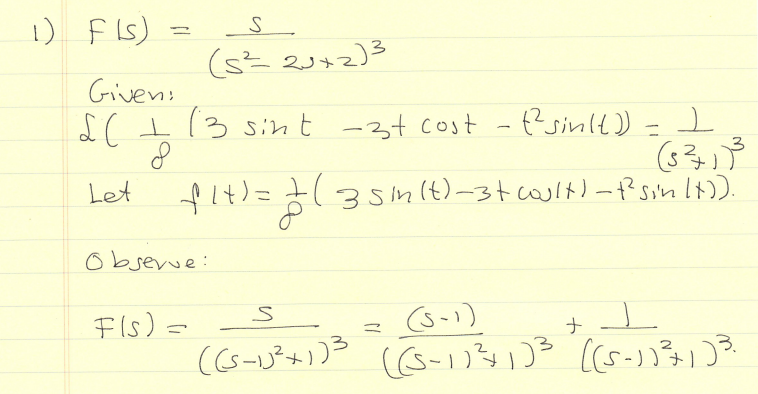 Let F(s) = s/(s² - 2s + 2)³ Find the inverse Laplace Transform o...