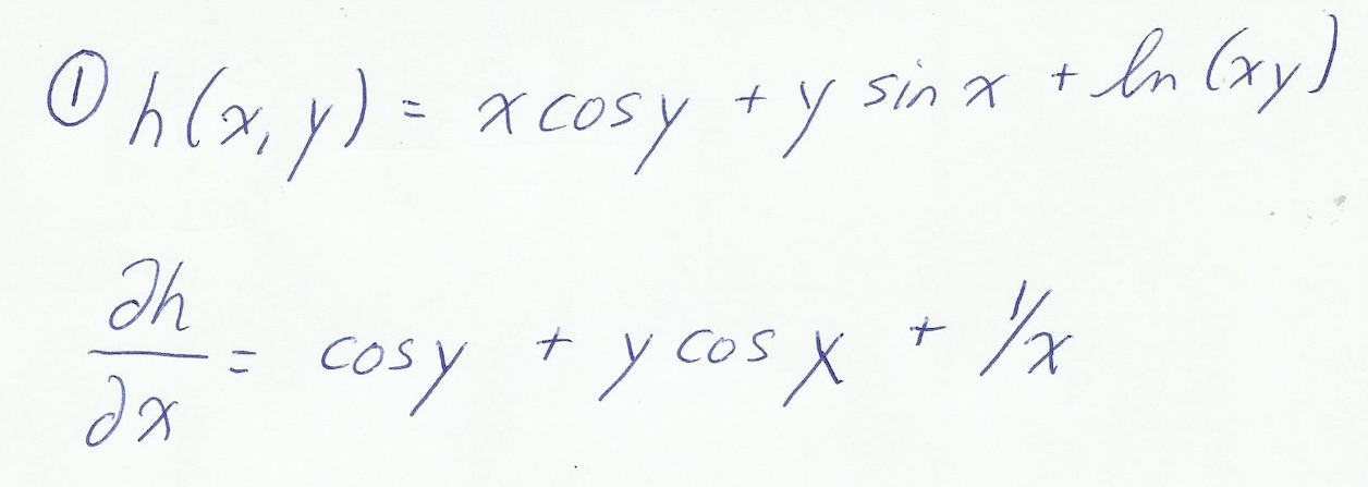 For the function h(x,y) = x cos y + y sin x + ln(xy), find δh/...
