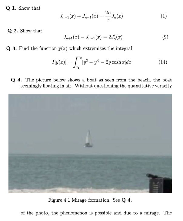 Int)tnxn (1) Q 2. Show that Jn+1(x)-Jn-1()2(x) (9) Q 3. Find t...