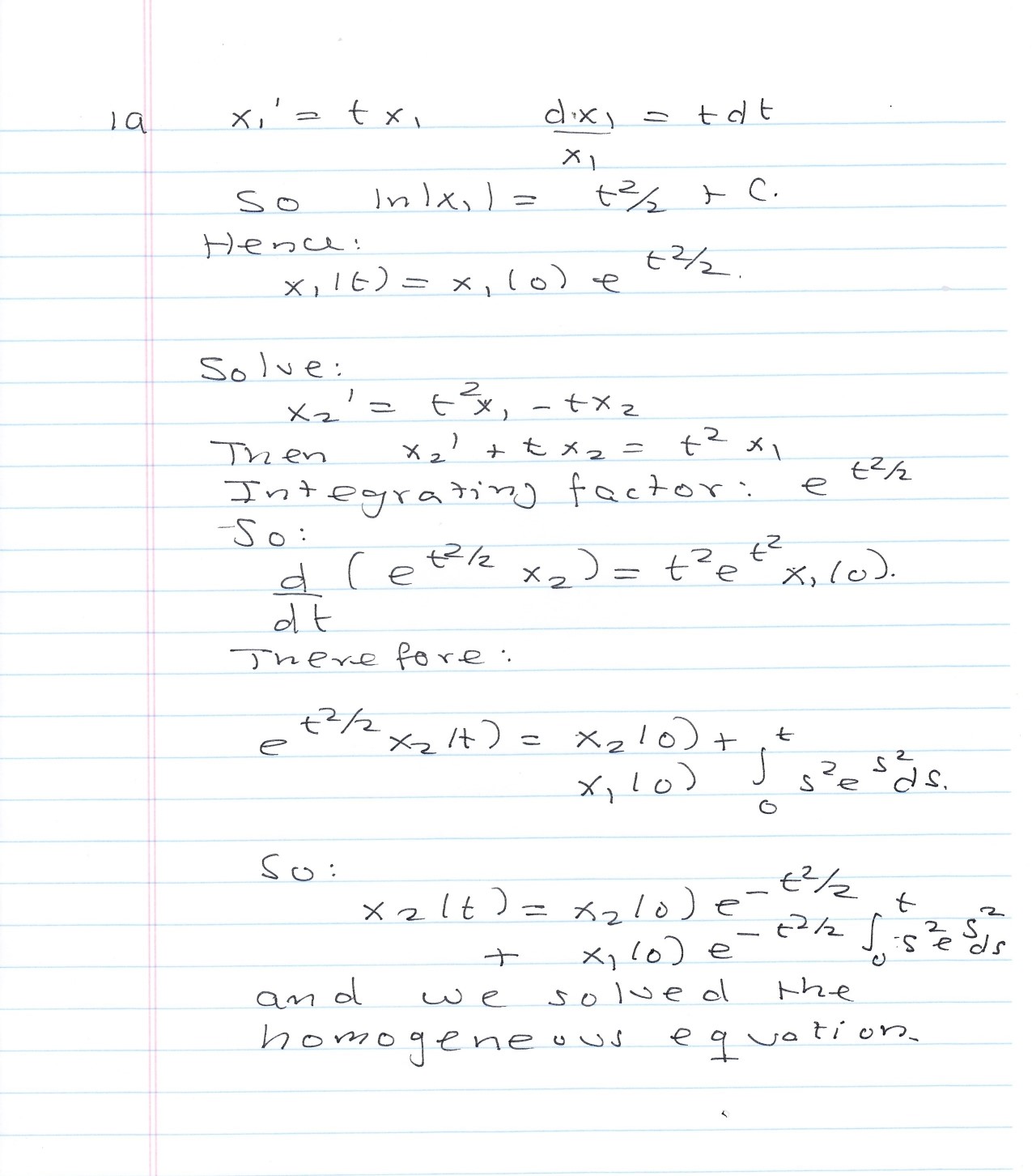 #1 a) Find the fundamental matrix P(t) for the homogeneous system ...