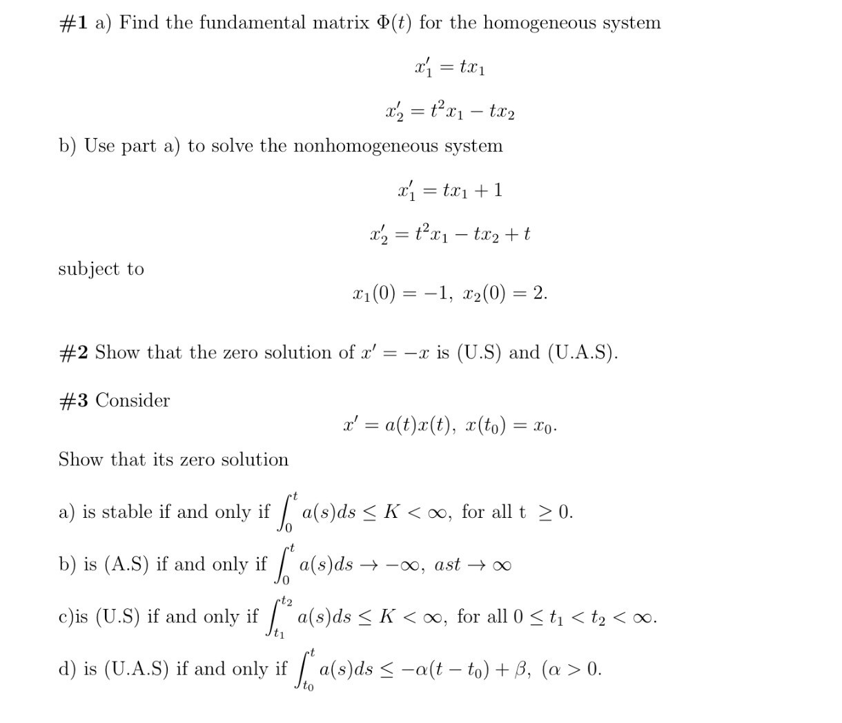 #1 a) Find the fundamental matrix P(t) for the homogeneous system...