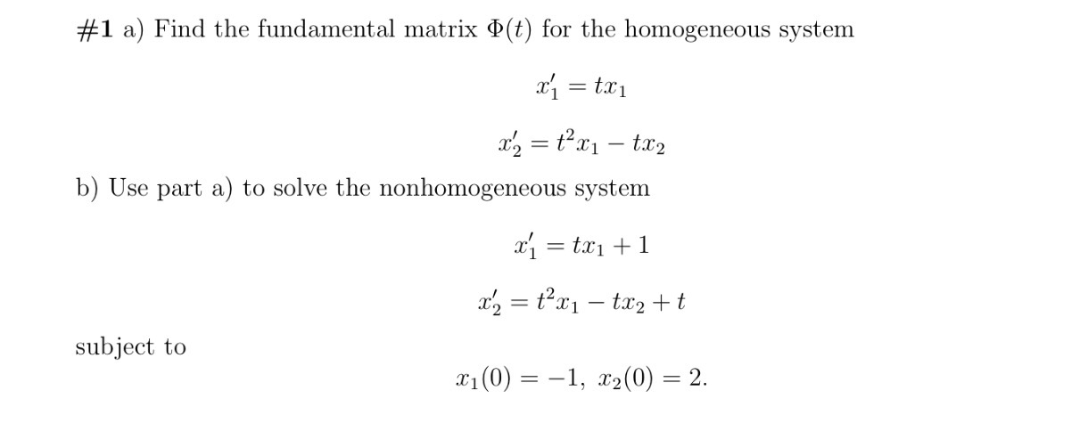 #1 a) Find the fundamental matrix P(t) for the homogeneous system...
