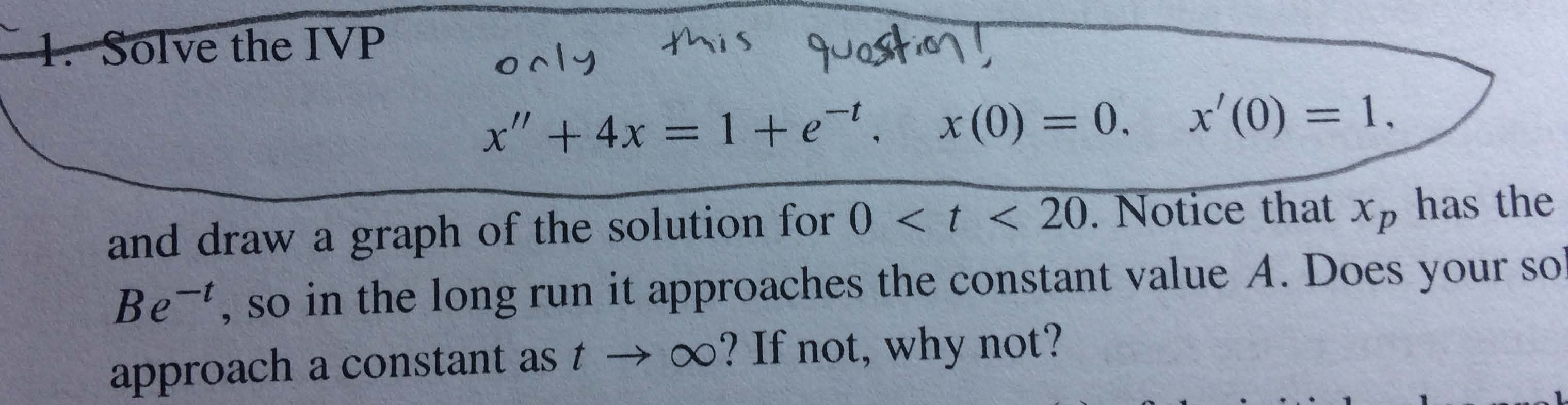 1. Solve the IVP only this question! x"+4x=1+e" x(0)== ...