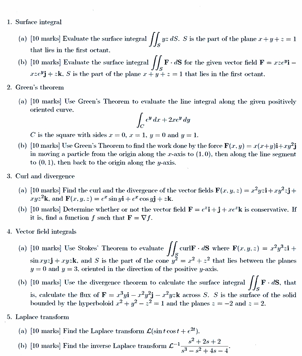 1. Surface integral (a) [10 marks] Evaluate the surface integral...