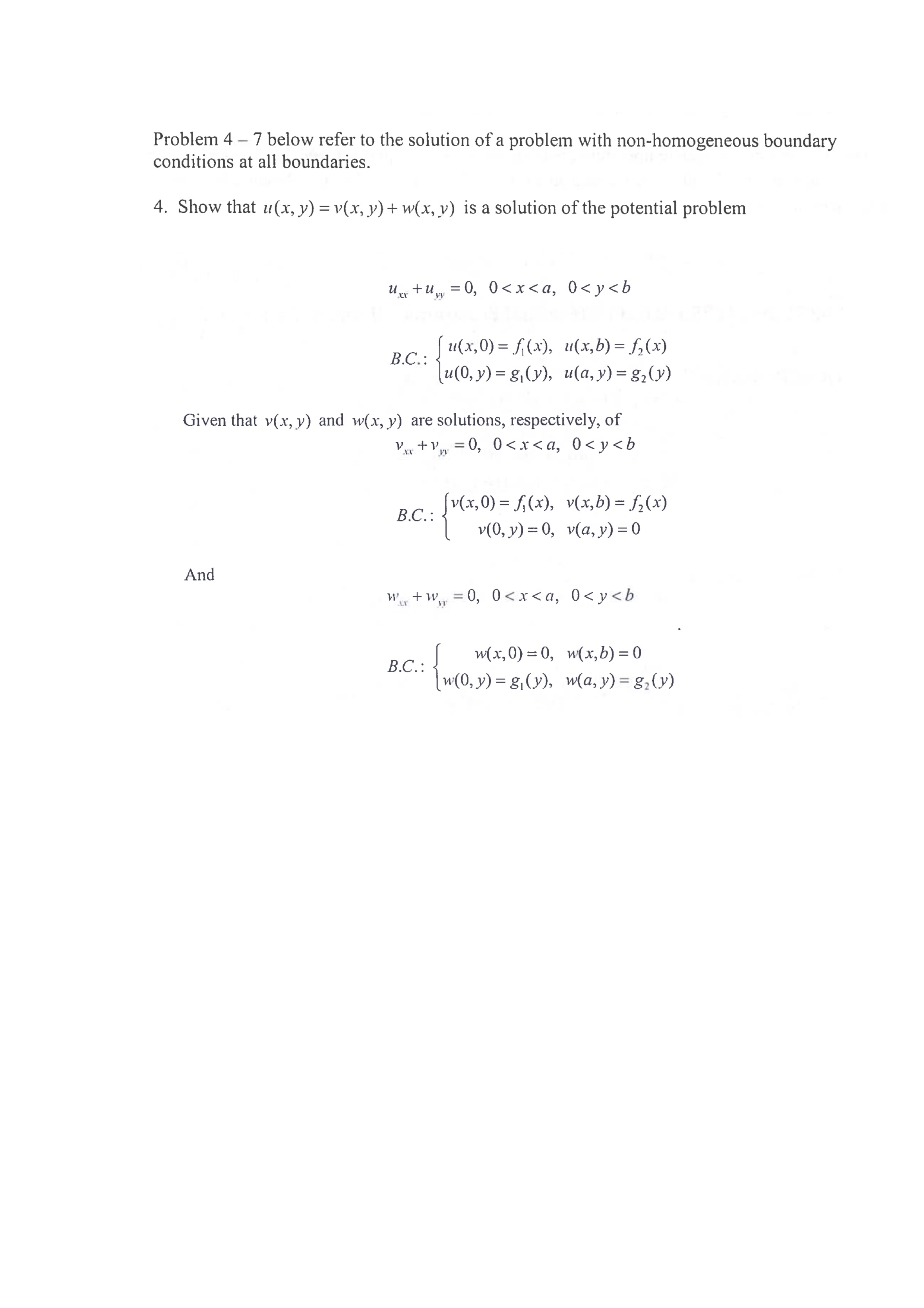 Problem 4 - 7 below refer to the solution of a problem with non-hom...