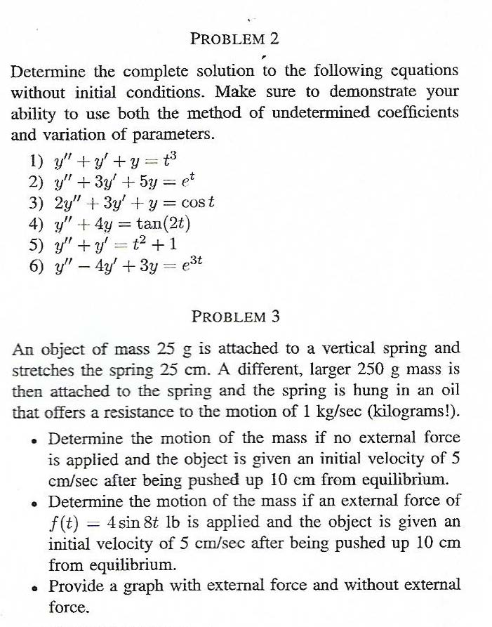 PROBLEM 2 Determine the complete solution to the following equatio...