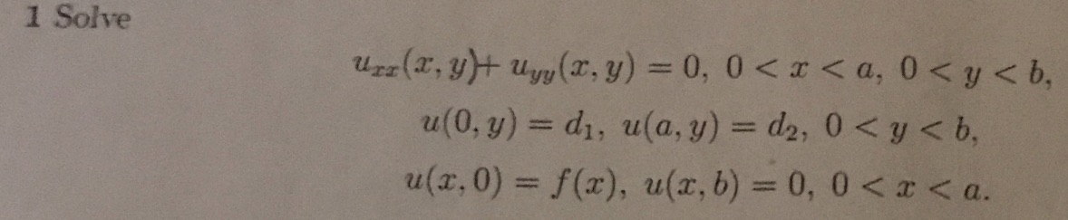 1 Solve Uzz(x,y)+ yy(x,y) = 0, 0<x<a, 0<y<b,<br=&qu...