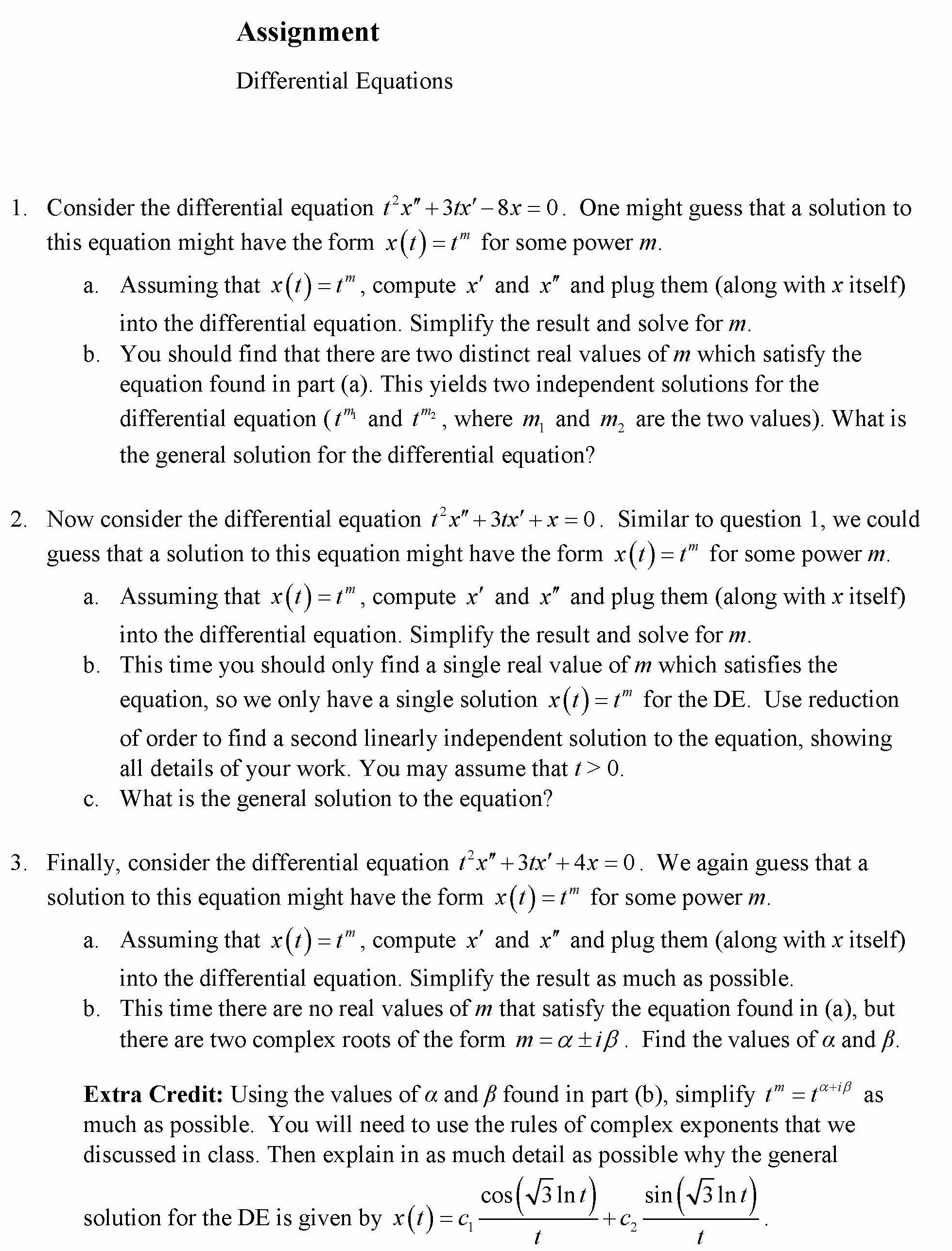 Assignment Differential Equations 1. Consider the differential eq...