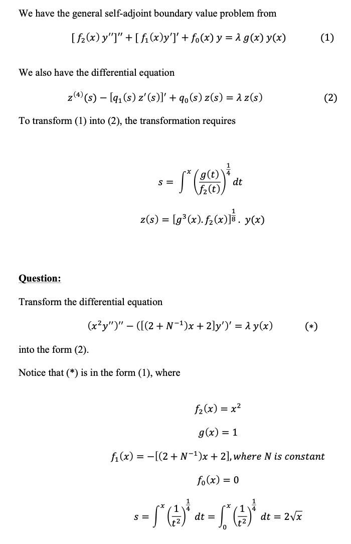 We have the general self-adjoint boundary value problem from [f2(x...