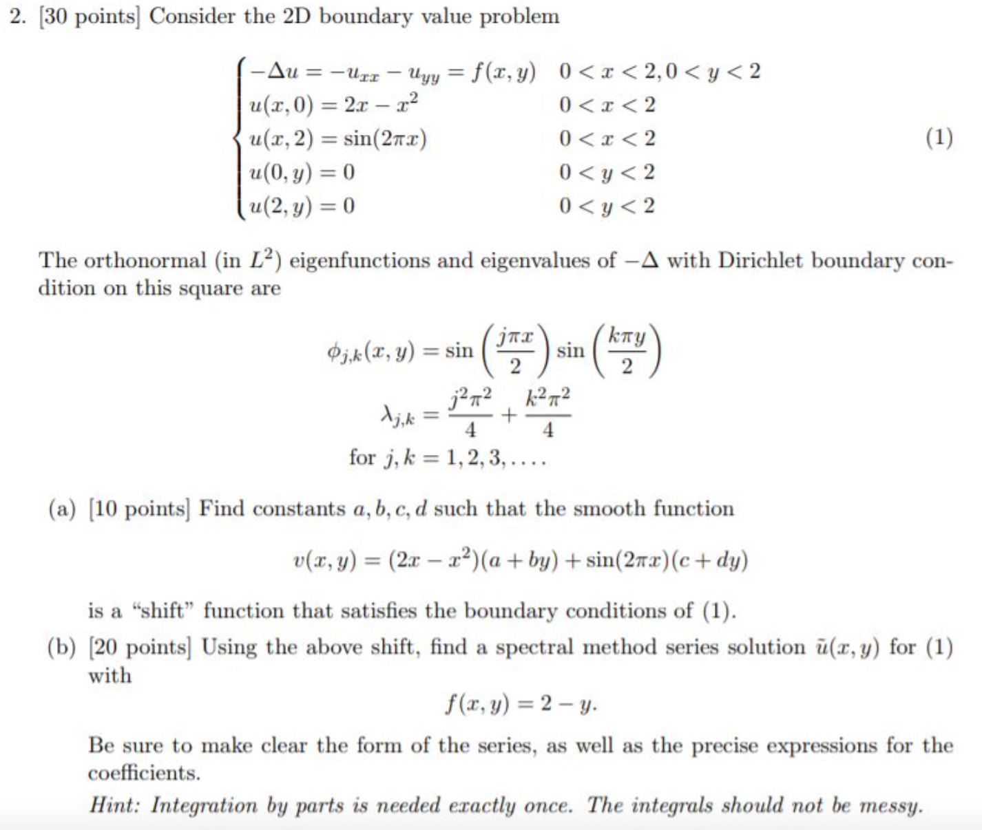 2. [30 points] Consider the 2D boundary value problem -Au=-urr-uy...
