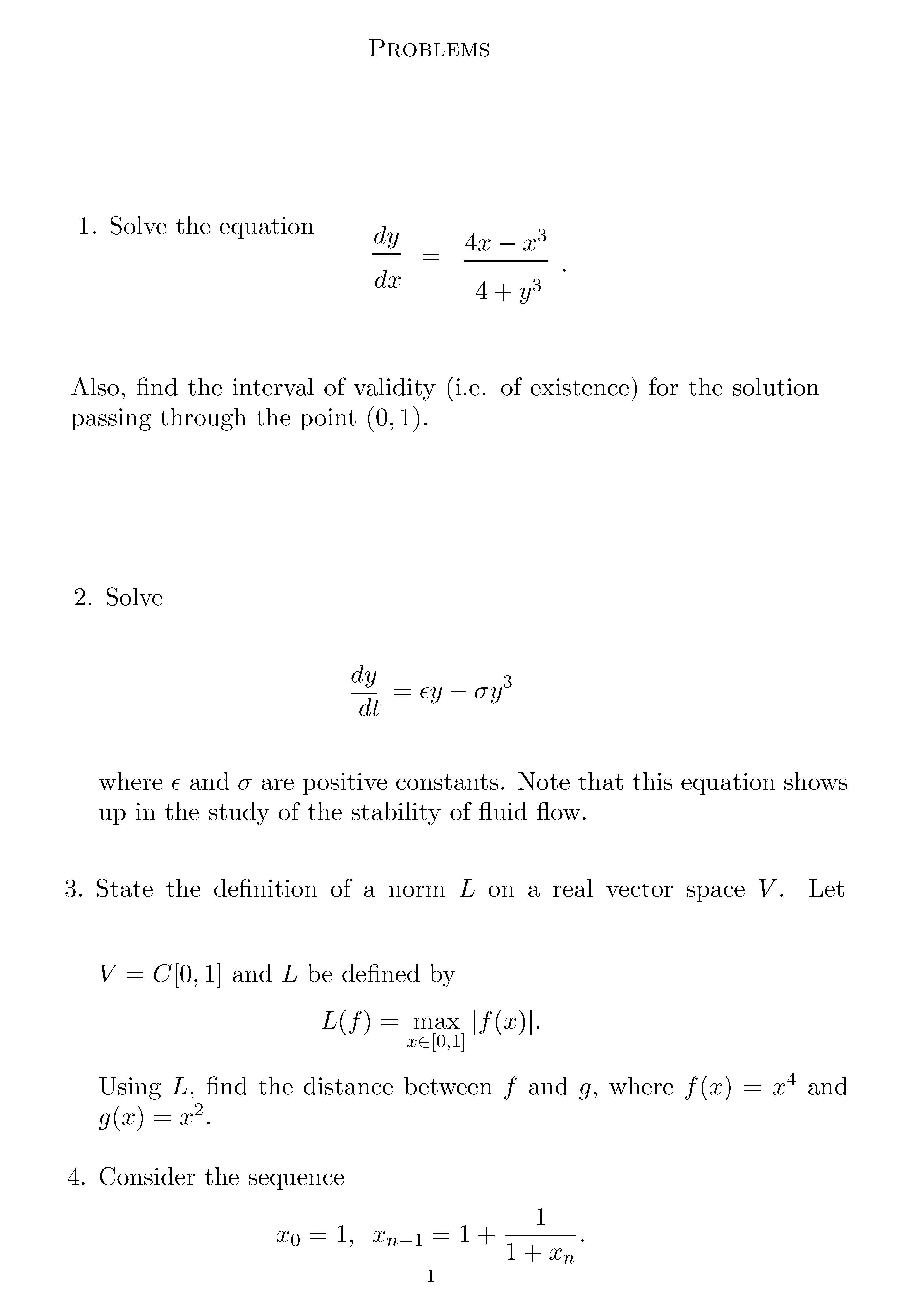PROBLEMS 1. Solve the equation dy dr 4+ga Also. find the inter...