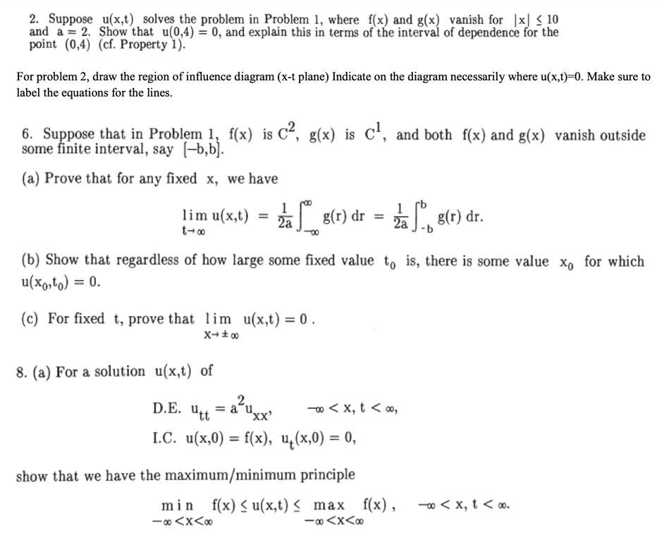 2. Suppose u(x,t) solves the problem in Problem 1, where f(x) and g...