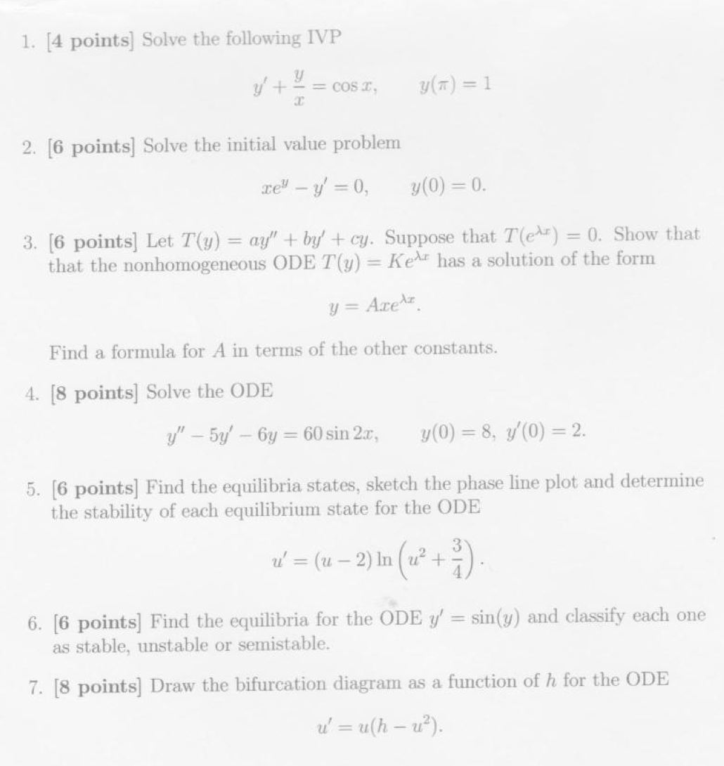 1. [4 points) Solve the following IVP = y(II) x 2. [6 points] S...