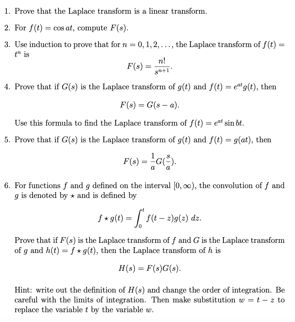 1. Prove that the Laplace transform is a linear transform. 2. For ...