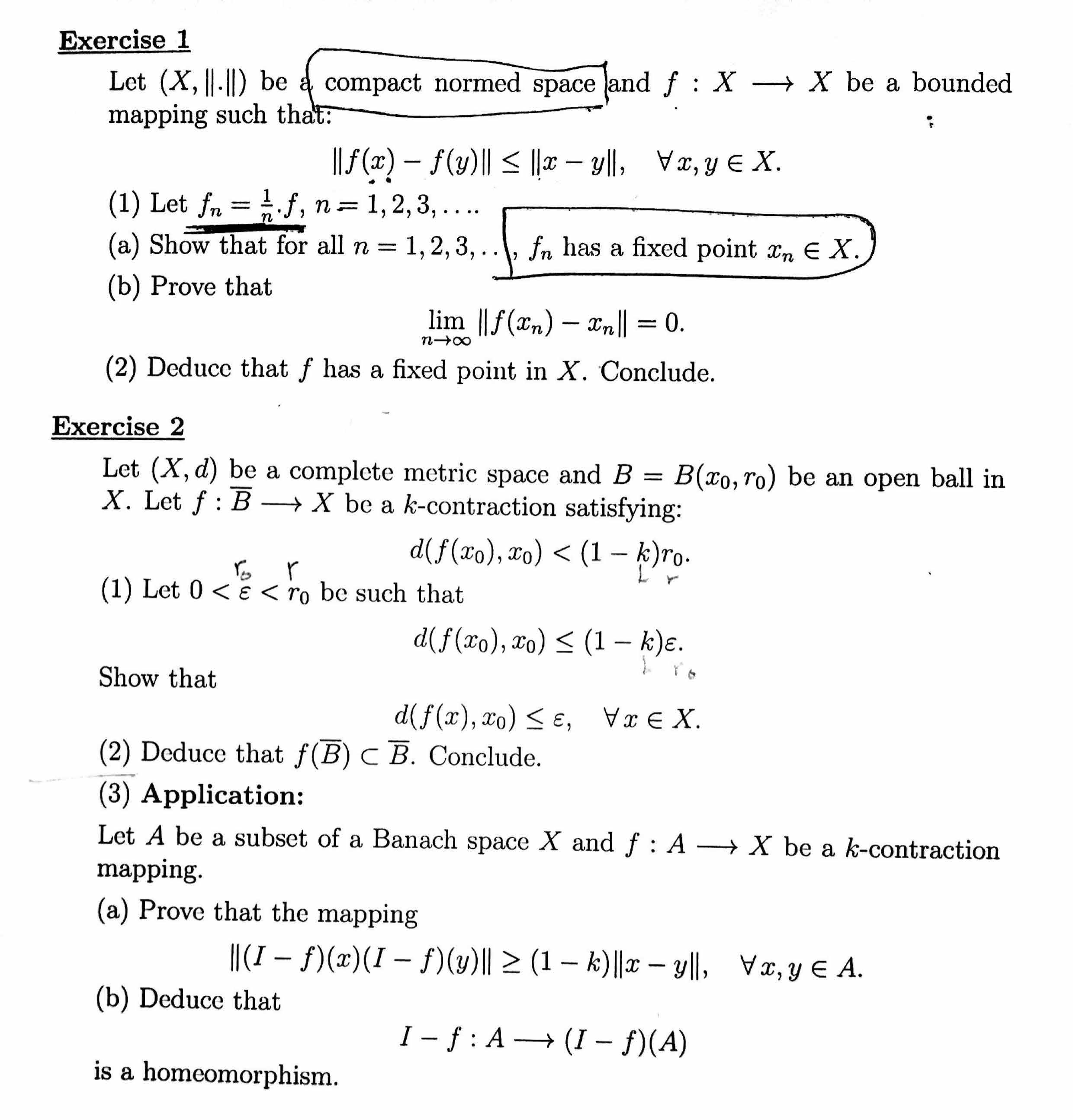 Exercise 1 Let (X, II-II) be a compact normed space and f : X X ...