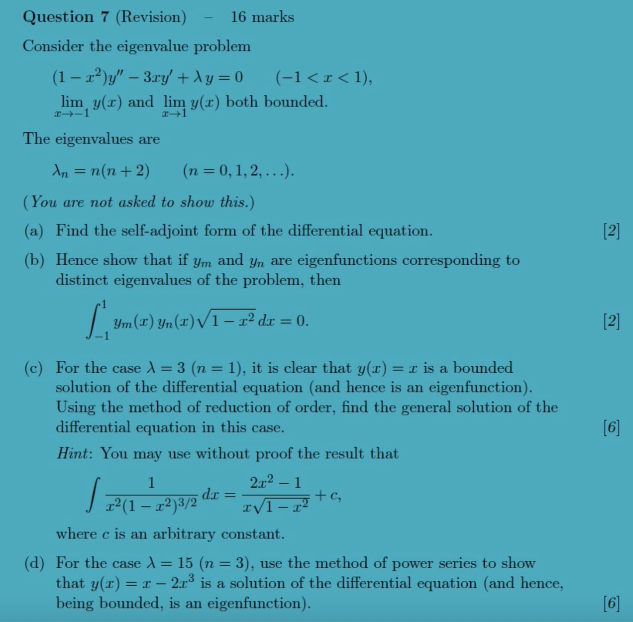 Question 7 (Revision) - 16 marks Consider the eigenvalue problem ...