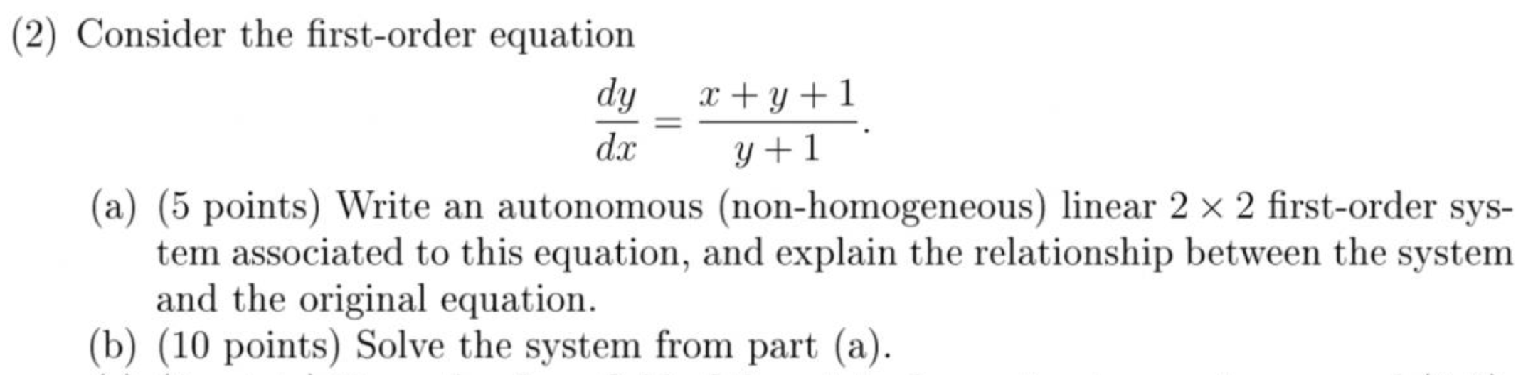 (2) Consider the first-order equation dx - y+ 1 dy-x+y+1 (a) (5 ...