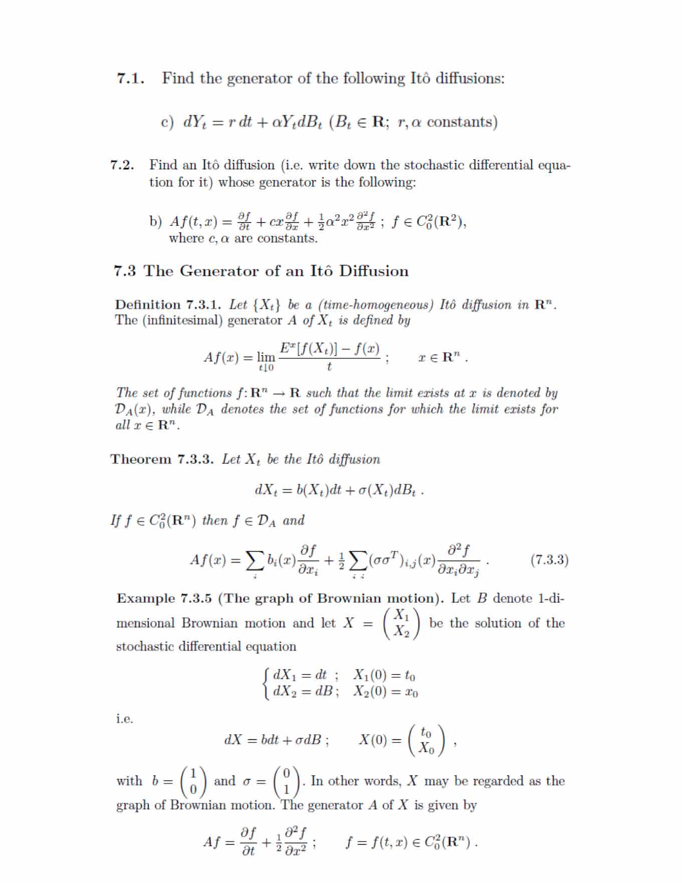 7.1. Find the generator of the following Itô diffusions: c) dY,...