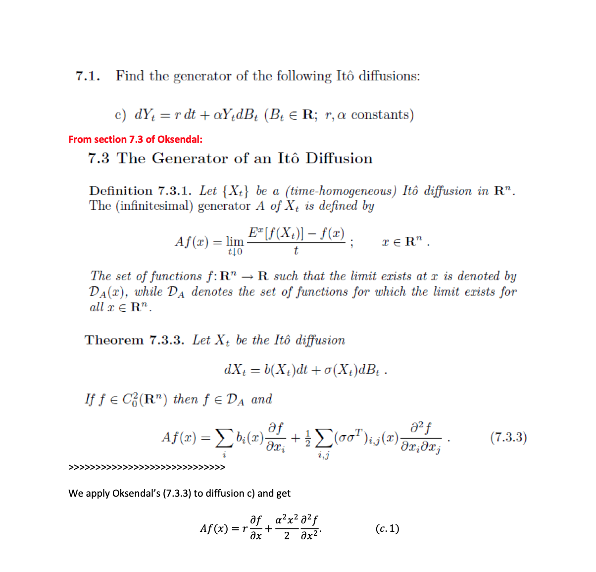 7.1. Find the generator of the following Itô diffusions: c) dY, =...