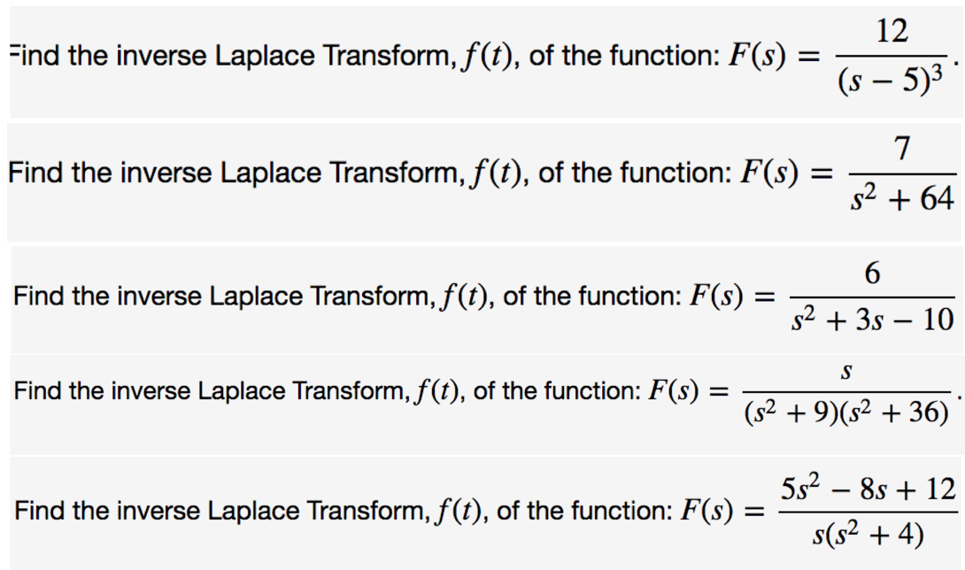 12 Find the inverse Laplace Transform, f(t), of the function: F(s)...
