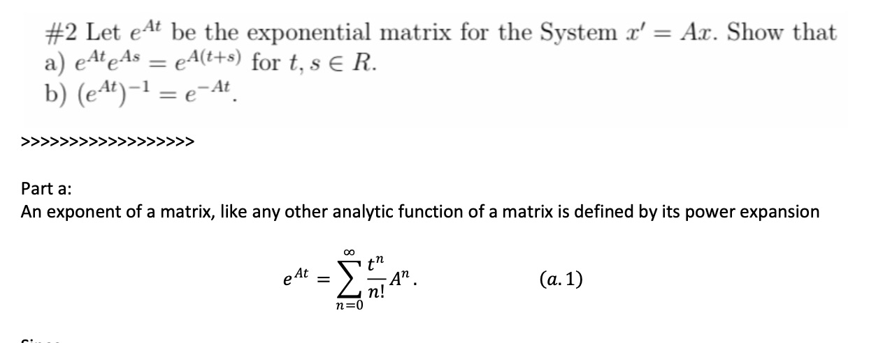 #2 Let eᴬᵗ be the exponential matrix for the System x' = Ax. Sh...