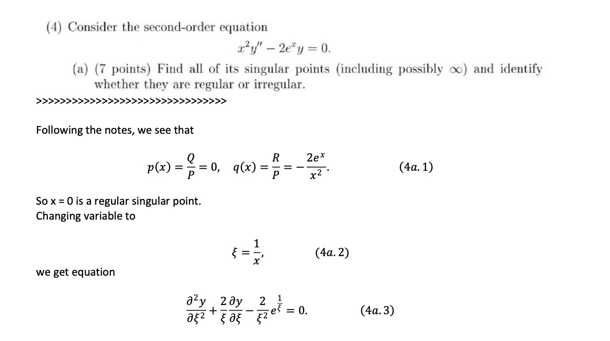 Question: (4) Consider the second-order equation x2y"-2ety=0...