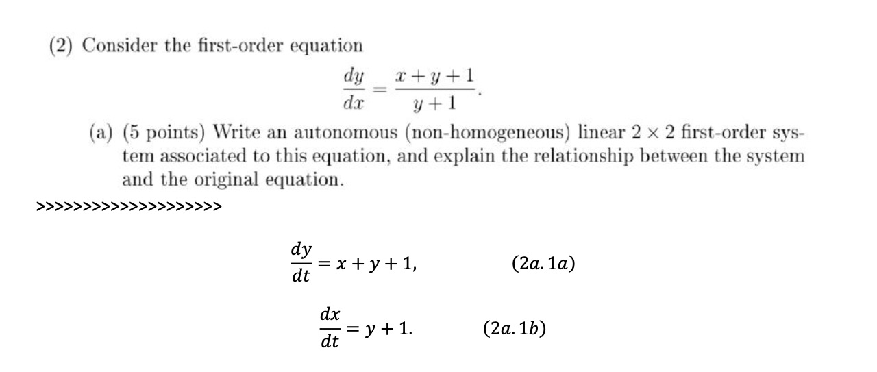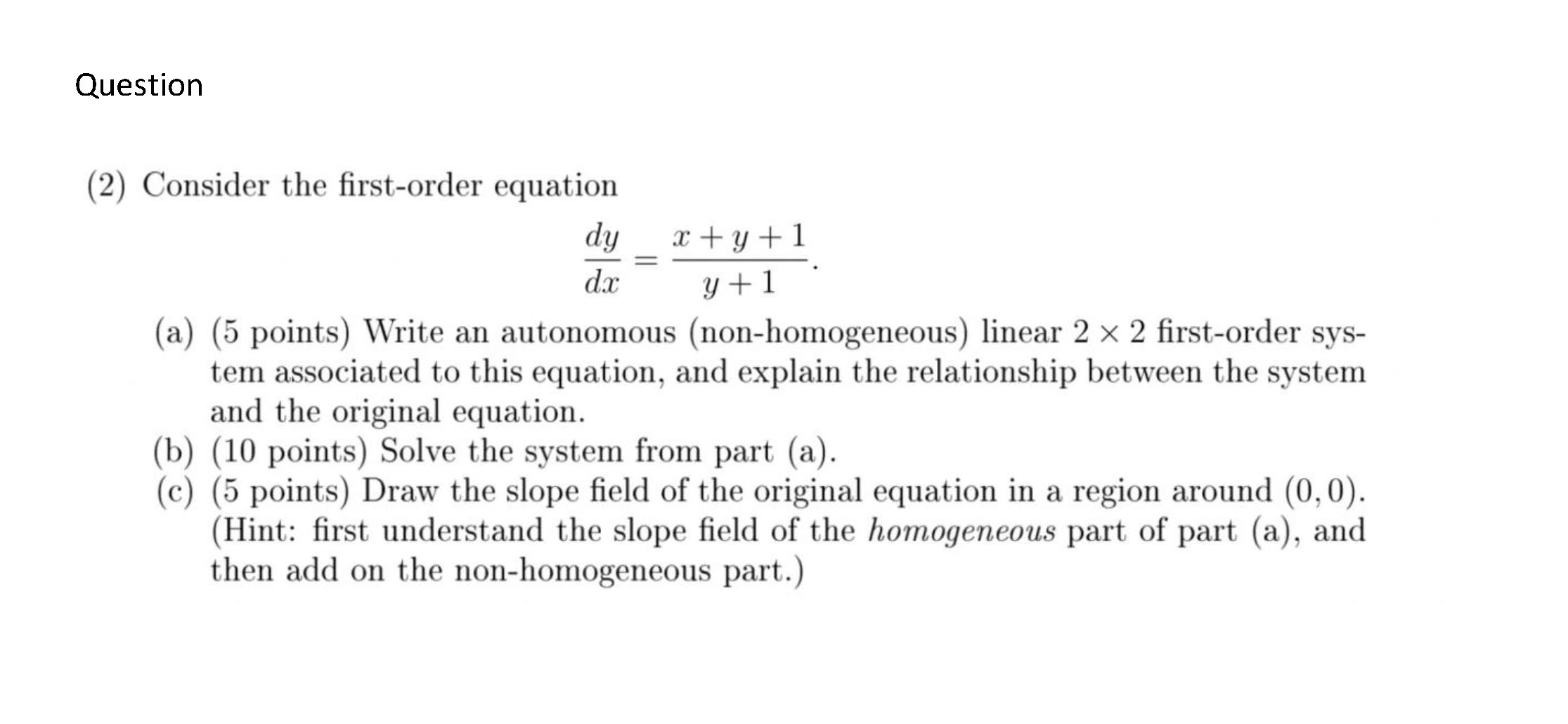 Question (2) Consider the first-order equation dy x + y + 1 = d...