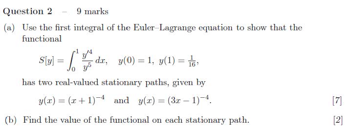 Question 2 - 9 marks (a) Use the first integral of the Euler-Lagra...