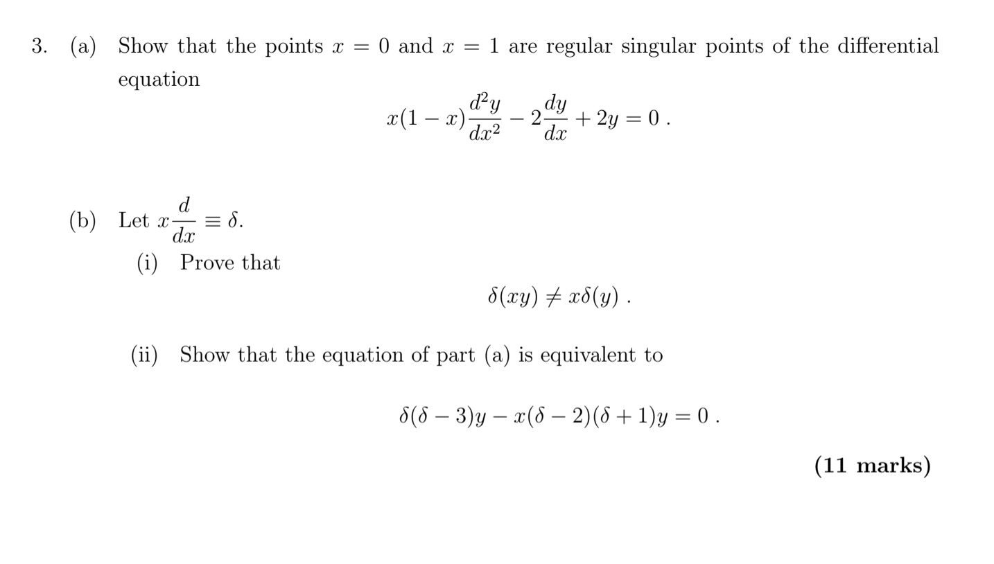 3. (a) Show that the points x = 0 and x = 1 are regular singular po...