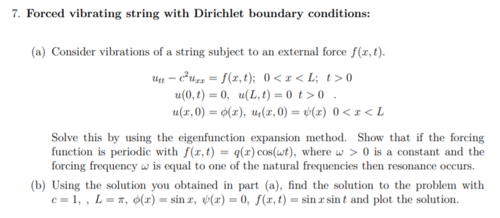 7. Forced vibrating string with Dirichlet boundary conditions: (a)...