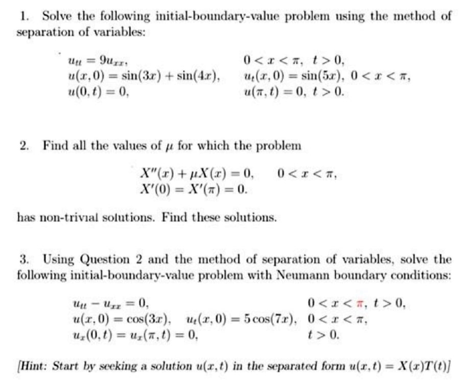 1 of 4 Partual Differential Equations L Solve the following init...