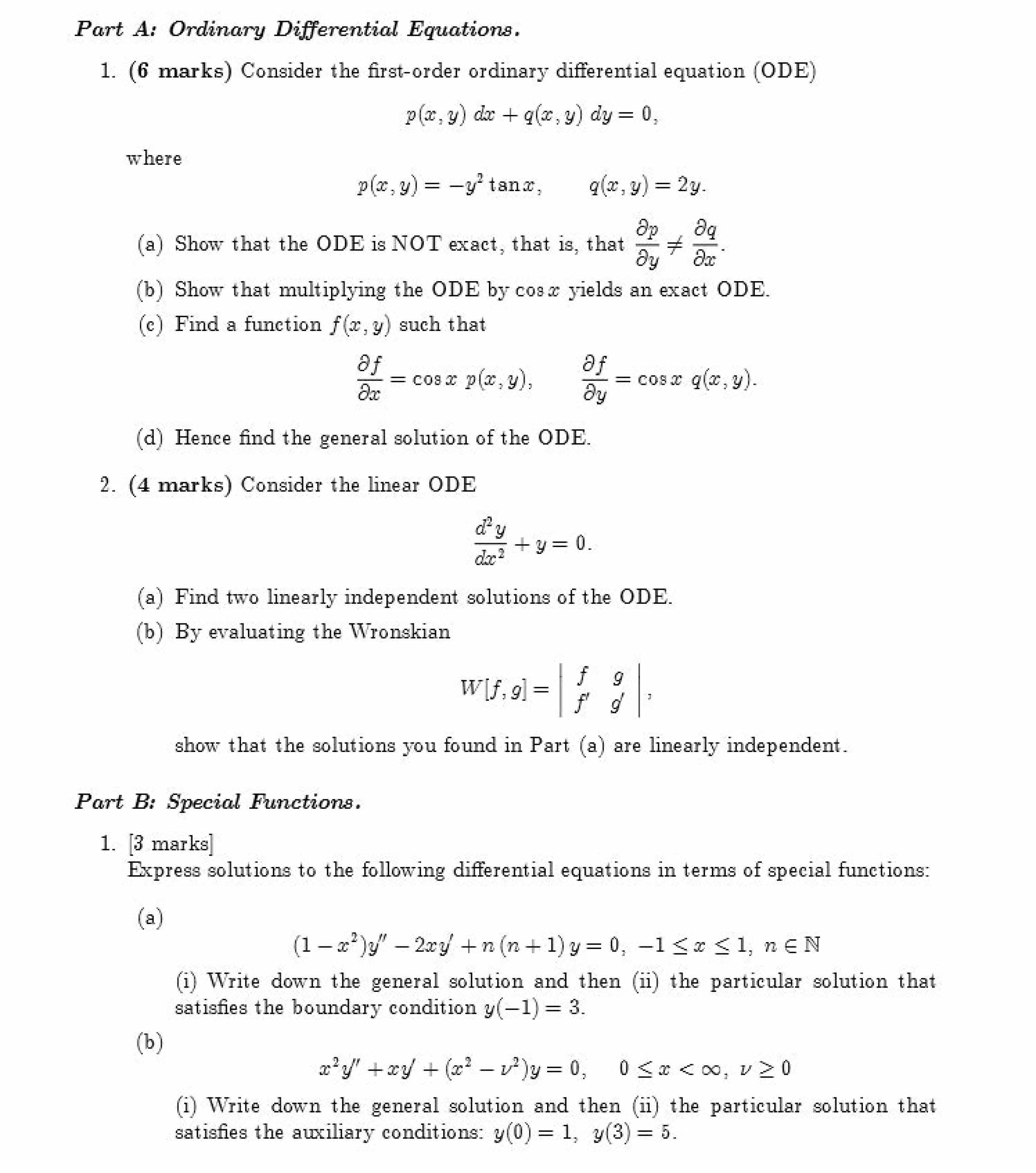 Part A: Ordinary Differential Equations. 1. (6 marks) Consider the...