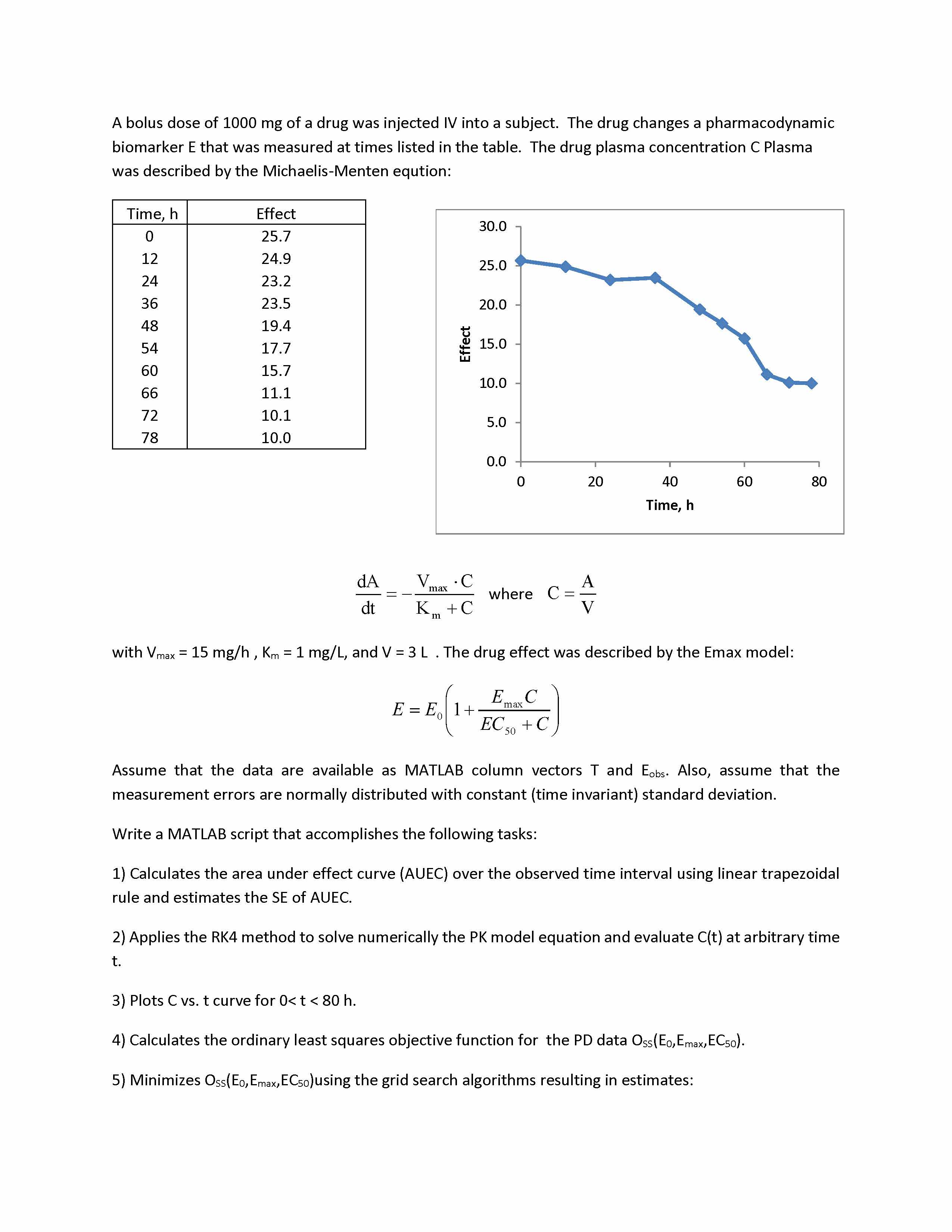 A bolus dose of 1000 mg of a drug was injected IV into a subject. T...
