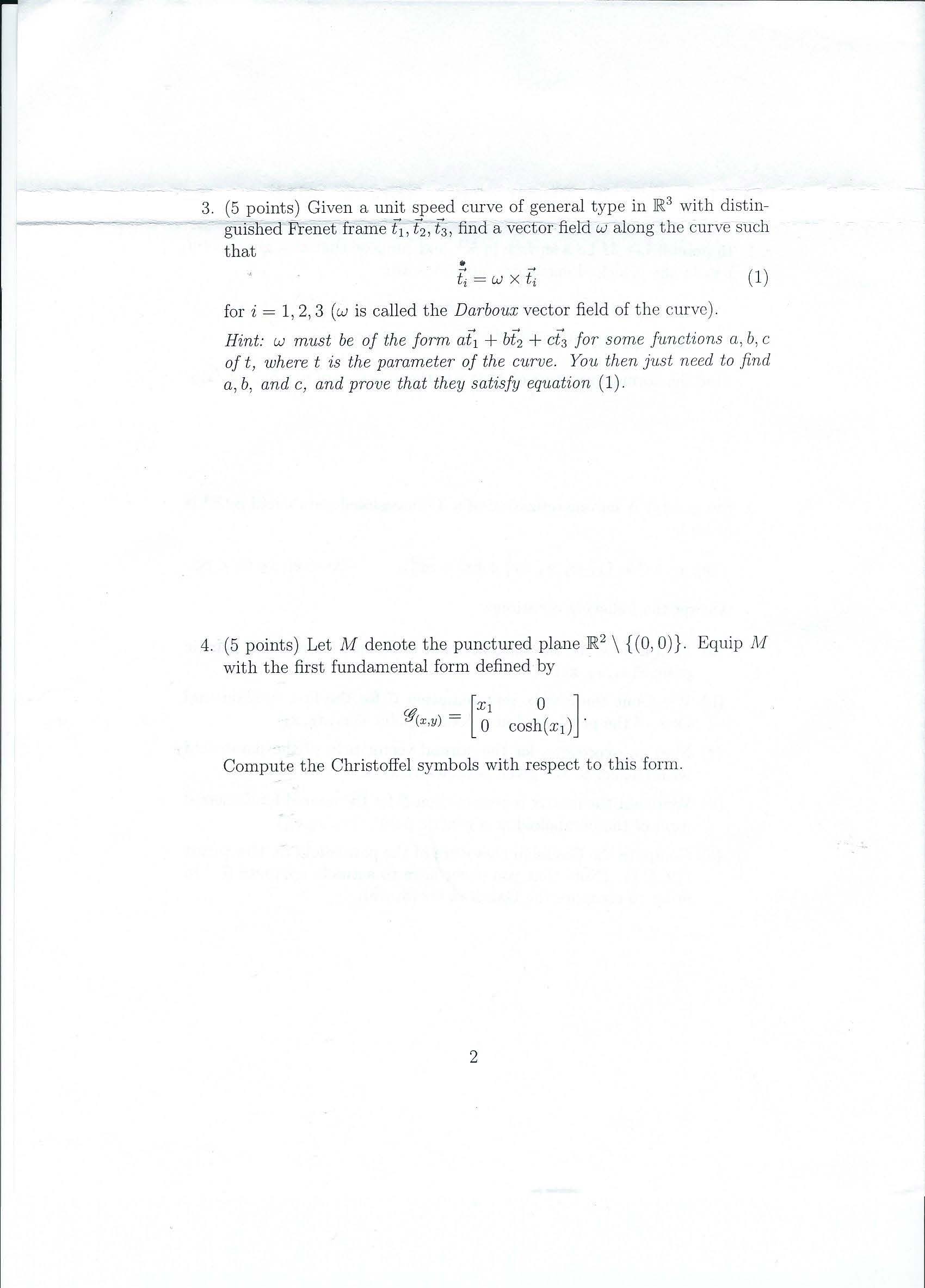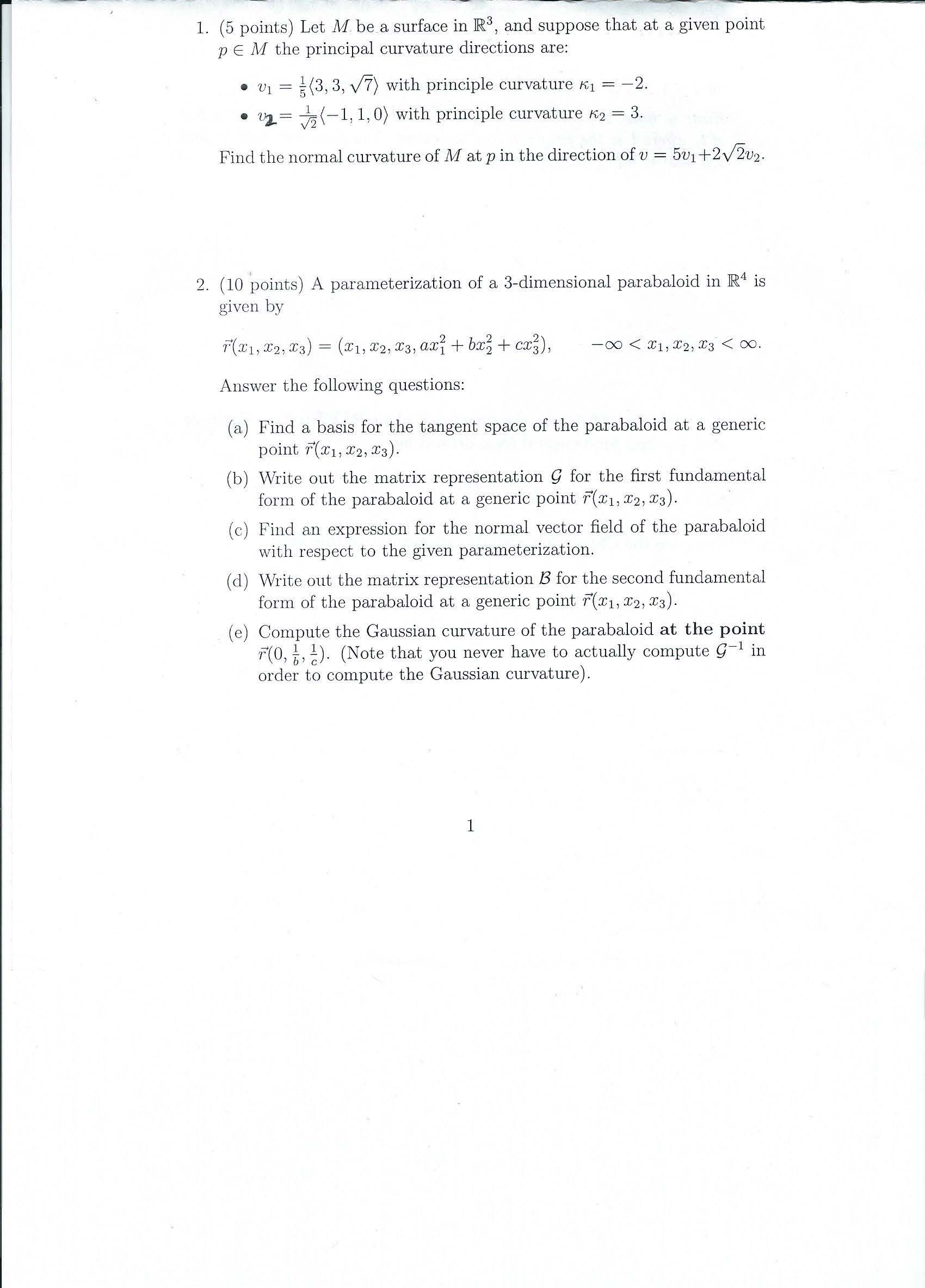 1. (5 points) Let M. be a surface in R³, and suppose that at a g...