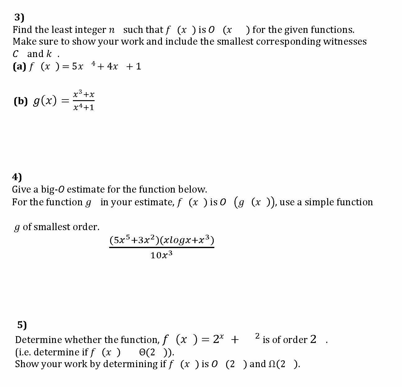 3) Find the least integer n suchthat f (x ) is 0 (x ) for the give...