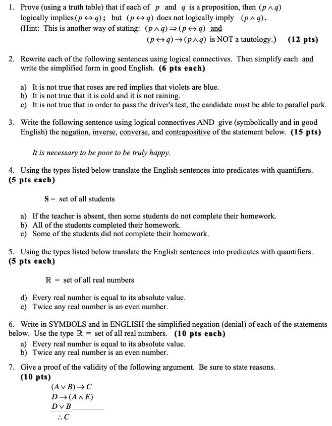 1. Prove (using a truth table) that if each of p and q is a proposi...