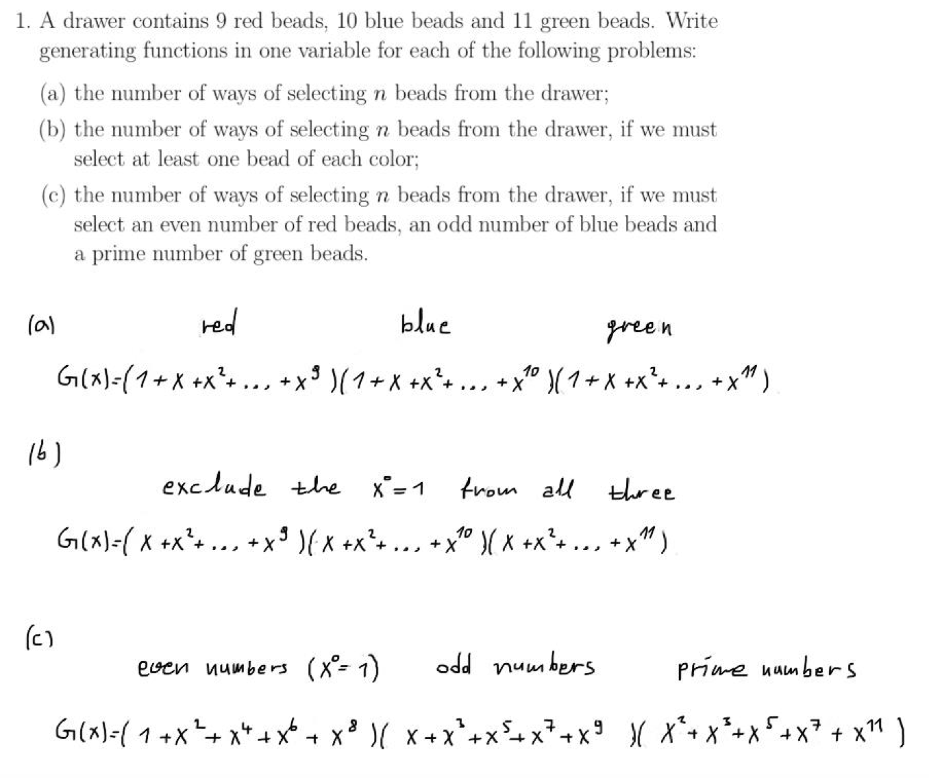 1. A drawer contains 9 red beads, 10 blue beads and 11 green beads....