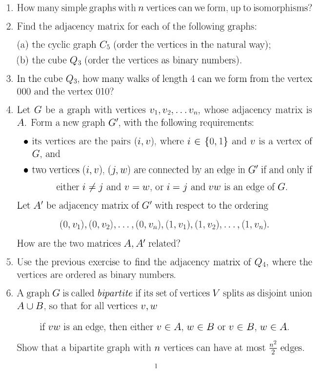 1. How many simple graphs with n vertices can we form, up to isomor...