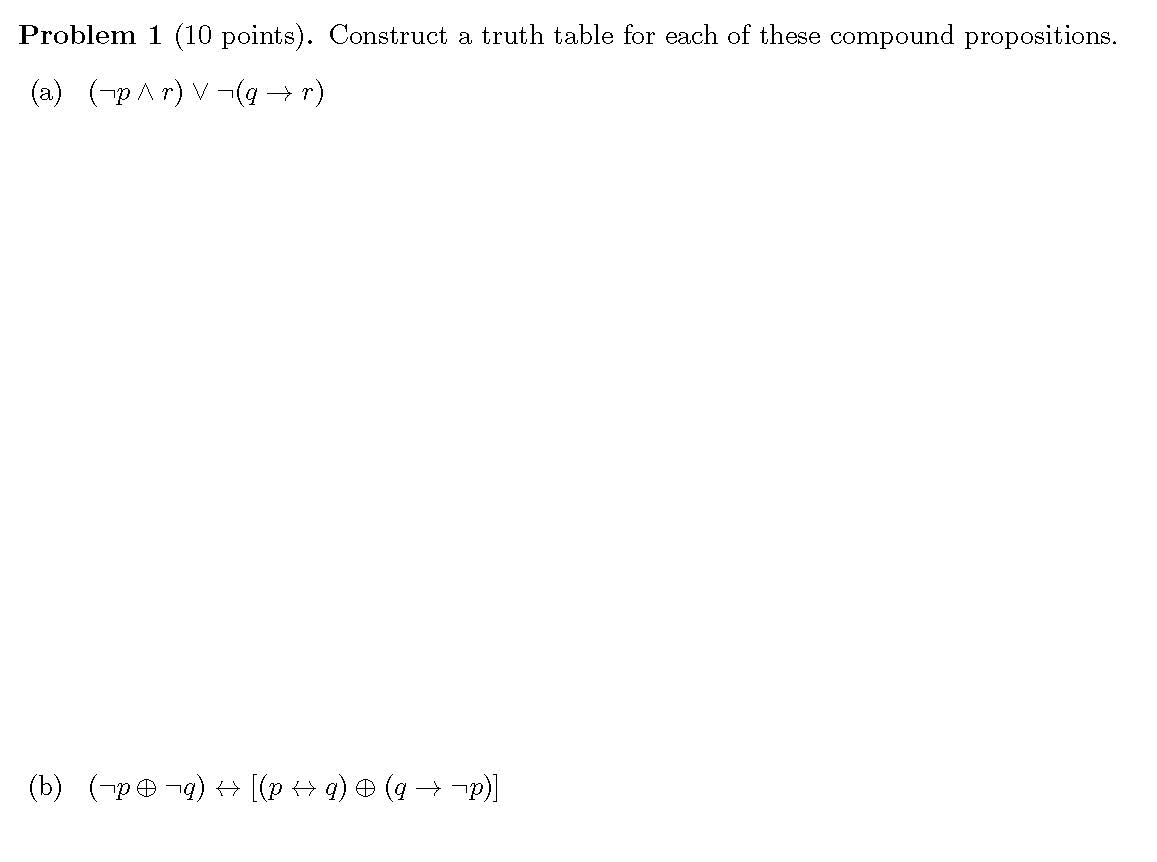 Problem 1 (10 points). Construct a truth table for each of these co...