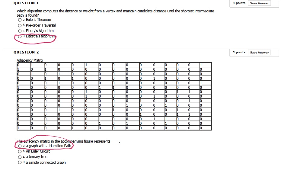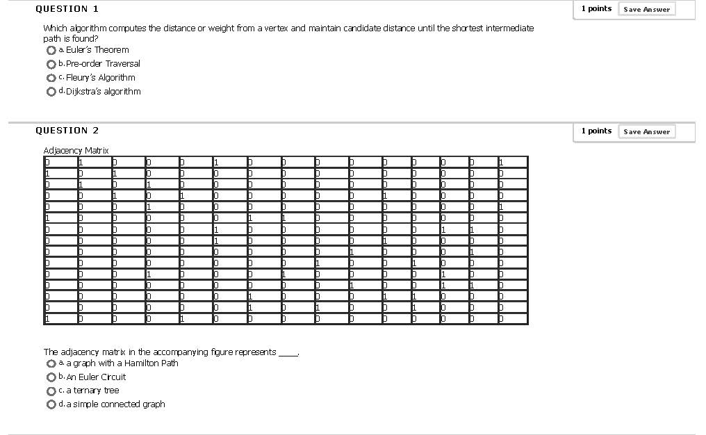 QUESTION 1 1 points S ave Answer Which algorithm computes the di...