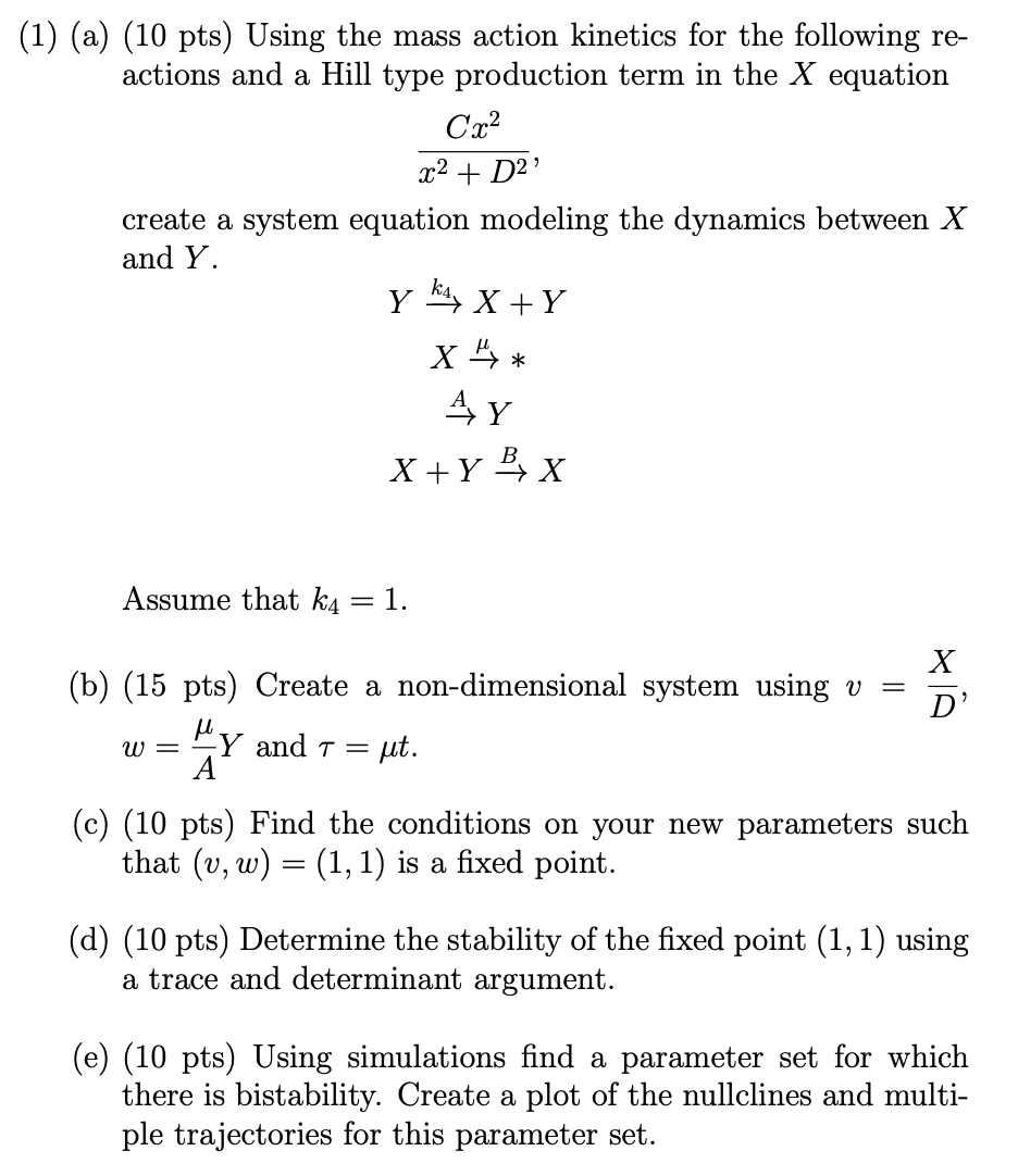 (1) (a) (10 pts) Using the mass action kinetics for the following r...